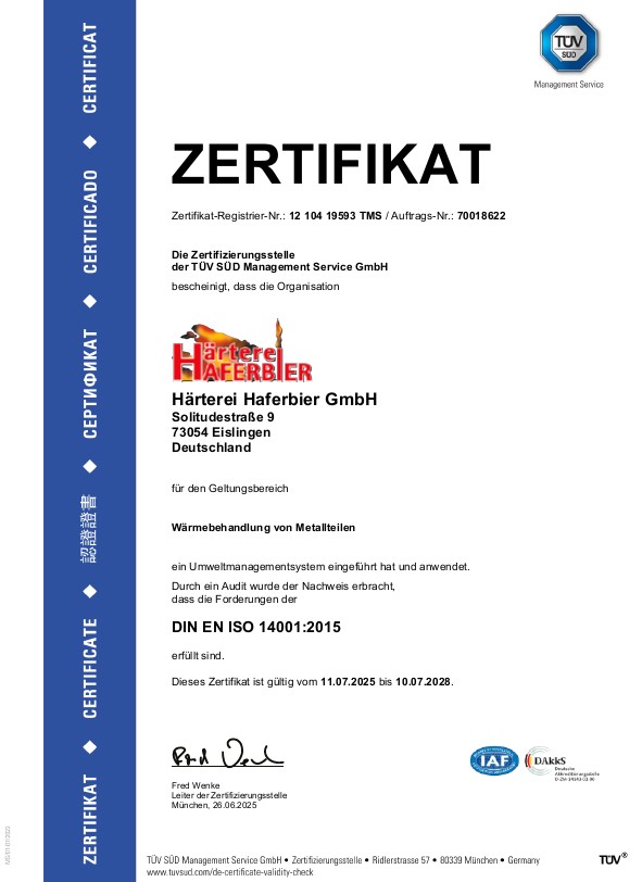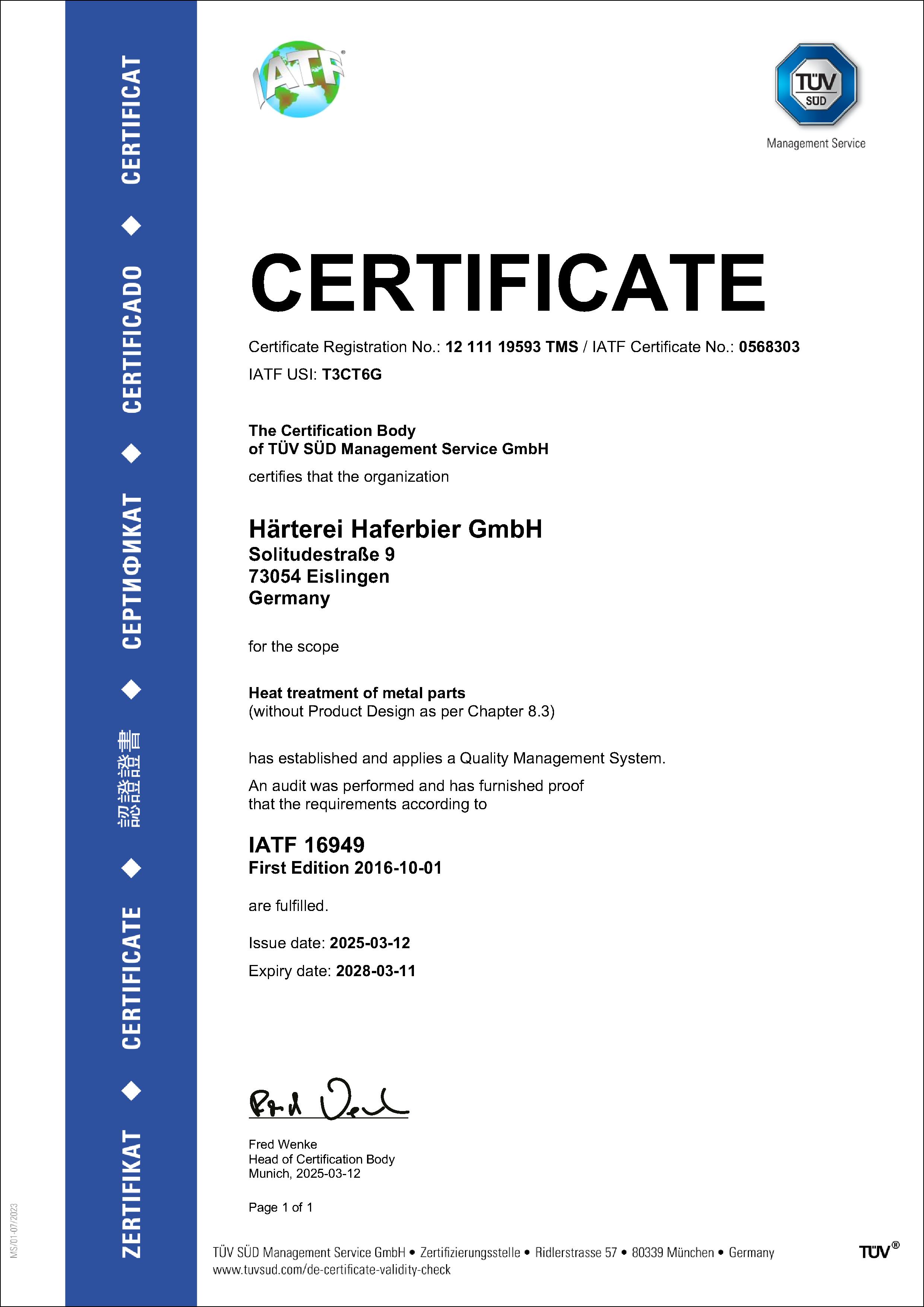 Wir sind durch den TÜV SÜD seit 2000 erfolgreich zertifiziert im Bereich Qualität nach den Normen ISO 9001:2015 und seit 2018 nach IATF 16949,