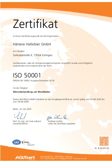seit 2015 im Energiemanagement nach ISO 50001:2018 und seit 2010 im Umweltmanagement nach ISO 14001:2015.